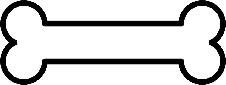 The image displays a simple, two-dimensional outline of a bone. It features a thick, solid black border enclosing a pristine white interior. The shape is symmetrical, with a straight central shaft and two rounded, bulbous ends, characteristic of a simplified, cartoon-like depiction of an animal bone. The design is clean and minimalist, focusing on the basic form without any intricate details or textures.