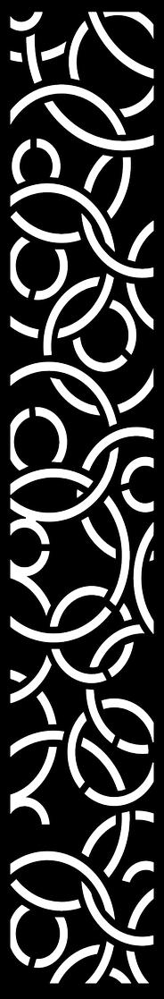 The image displays a vertical panel featuring a complex, continuous Celtic Knot Pattern in white against a solid black background. The design consists of thick, interwoven curved lines and partial circular segments that flow seamlessly, creating an intricate, abstract network without clear start or end points within the visible area. The white lines appear to pass over and under each other, giving the illusion of depth and a three-dimensional knot.